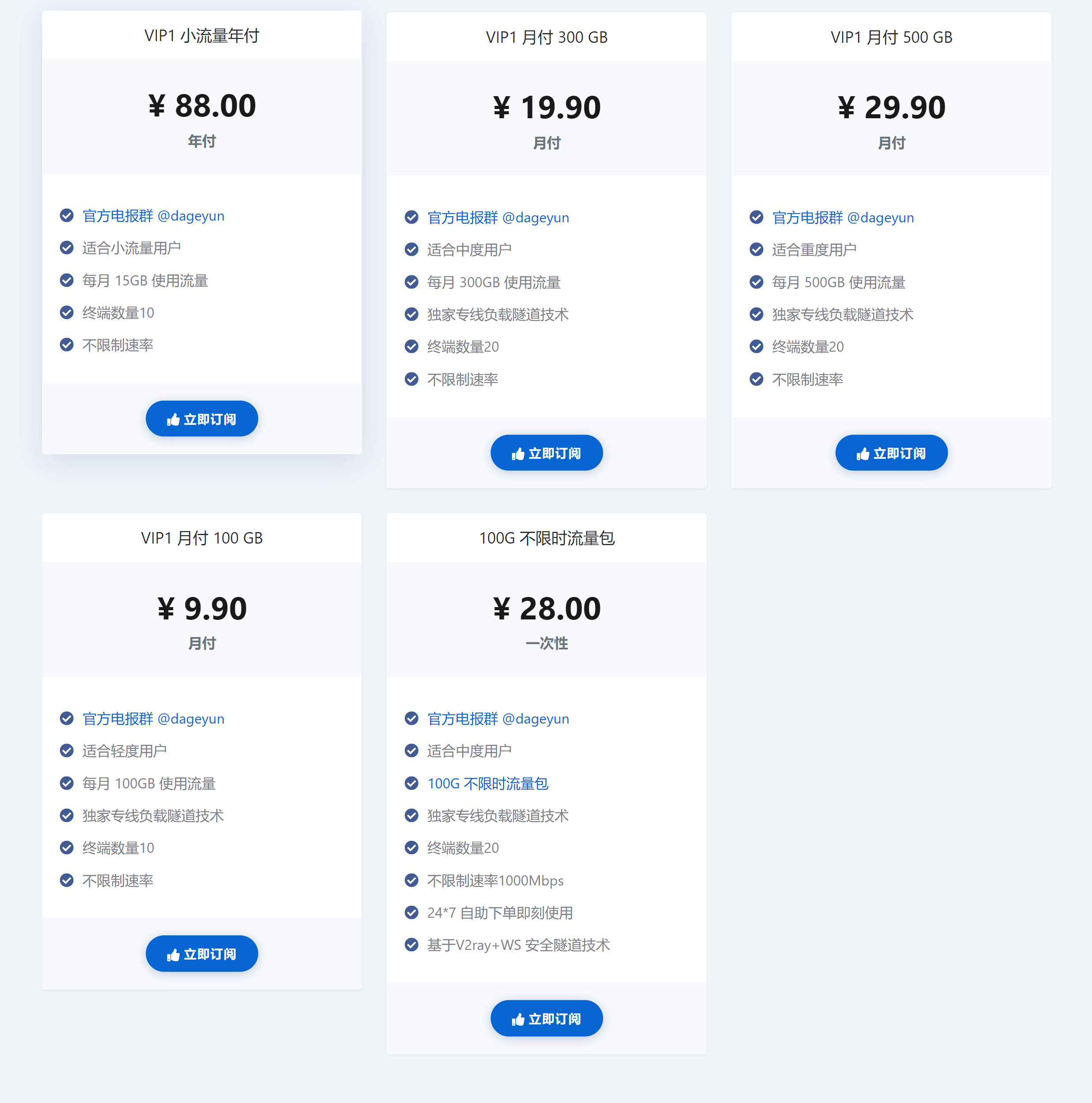注意: 更换其它套餐会被覆盖掉当前的账号套餐 流量也会重置 其他参数都以最后的套餐为主. 建议直接续费或者购买当前相同的套餐