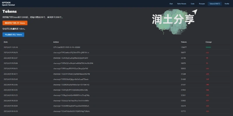 • 账号低于2000 Token时,GPTDOS 官方会免费赠送 200 Token,直到 2000。