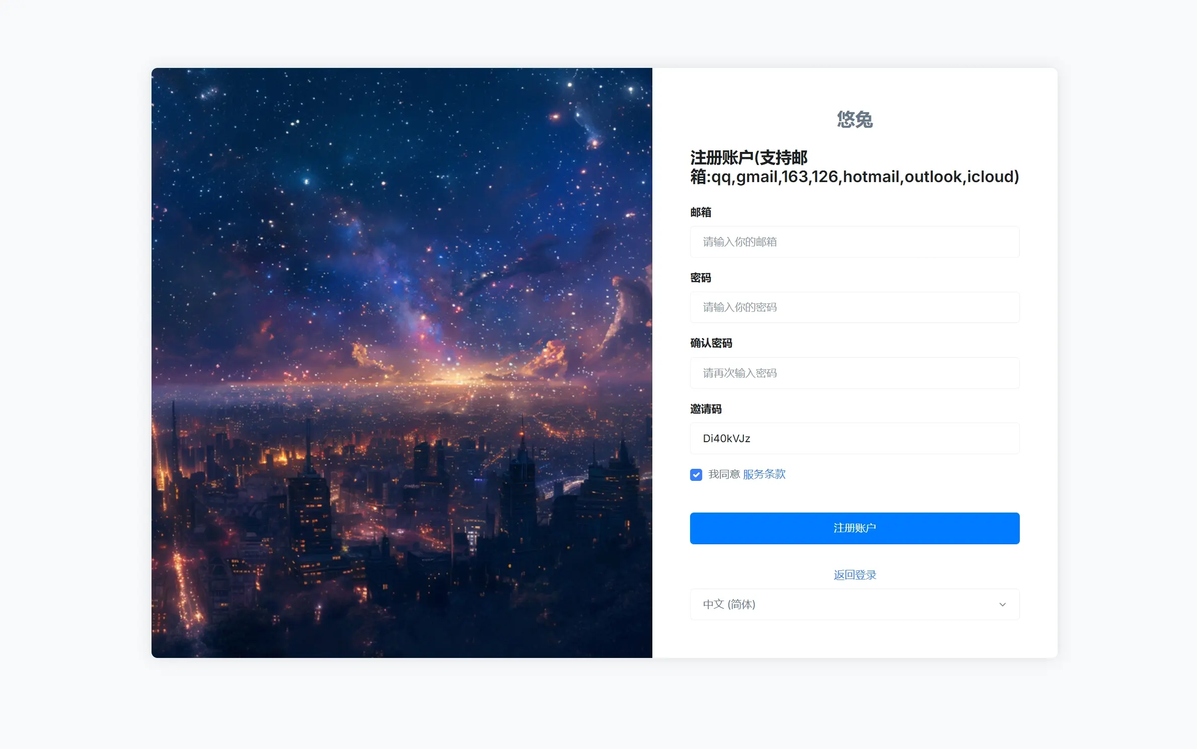请注意:有假冒的悠兔机场,务必认准悠兔机场官网,真的悠兔机场目前已经不再支持注册免费试用,并且官网注册页面长这样: