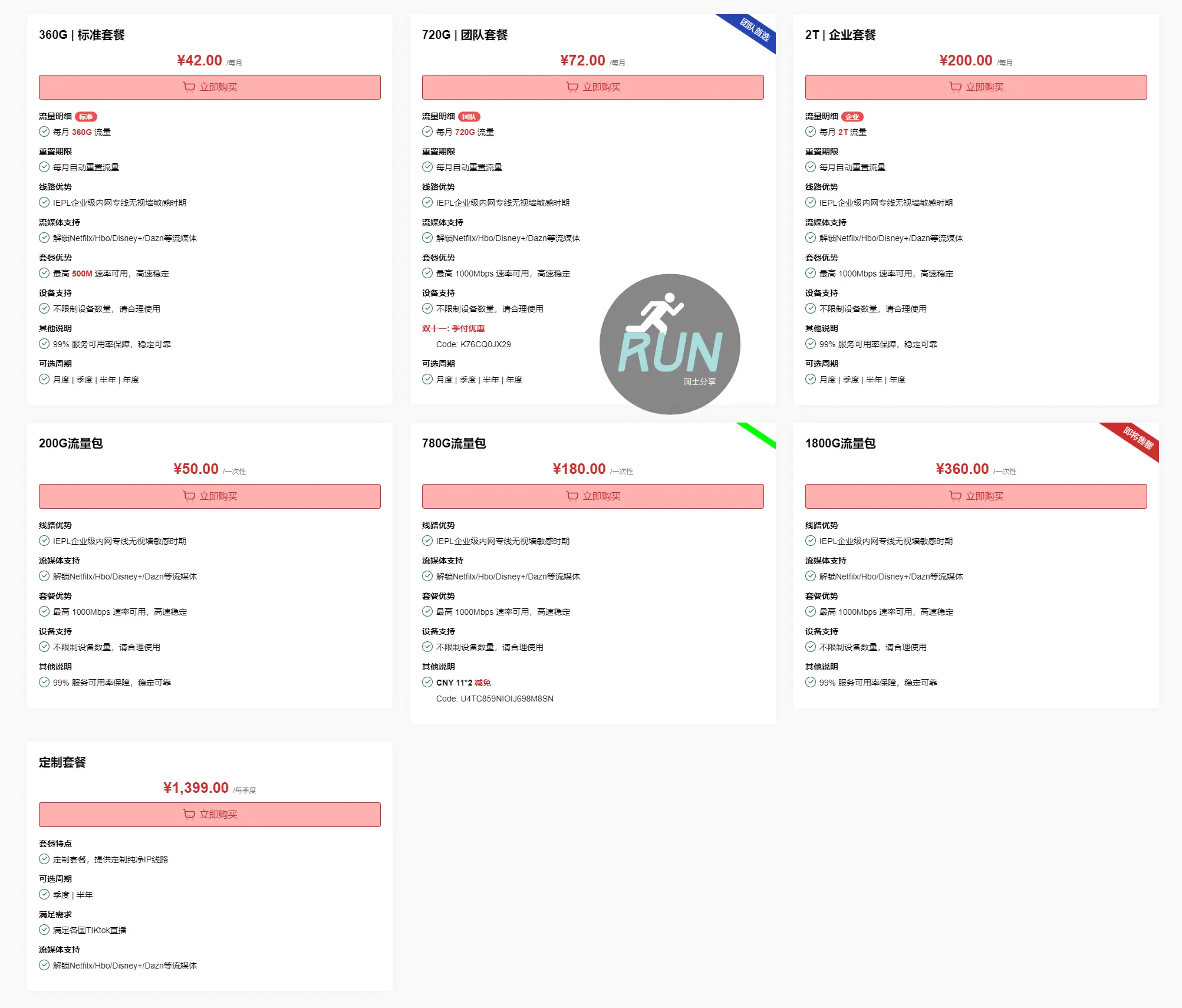 限时活动,标准套餐实际会给到 440G流量,月付/季付/年付均会增加流量。