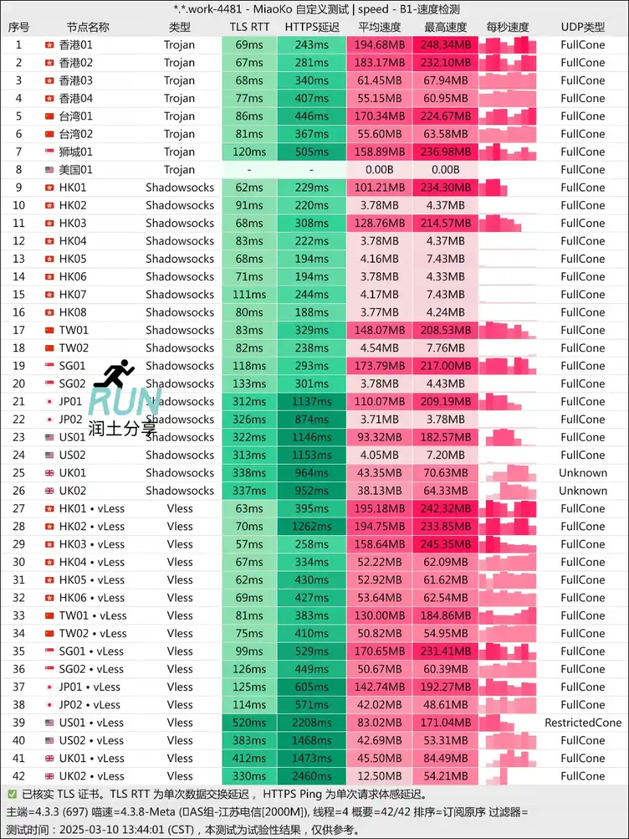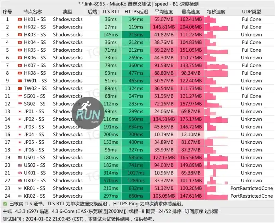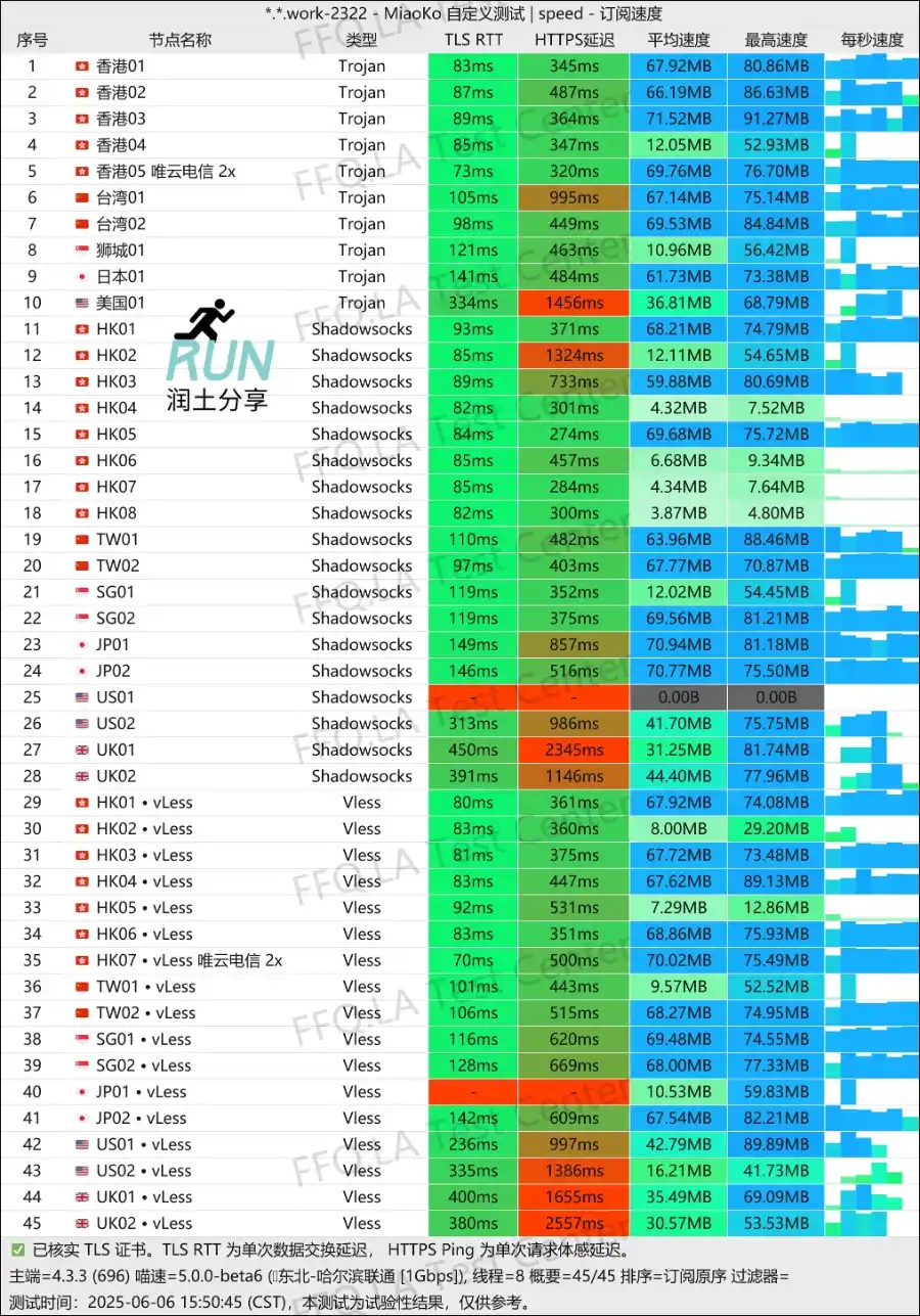 测速图仅包含了部分协议,机场会更根据客户端 UA 下发不同的协议,一般为 Shadowsocks 和 Trojan,实际上手时可以手动选择不同协议,只需要在订阅链接处添加不同的后缀参数,具体方式参考机场官方文档。