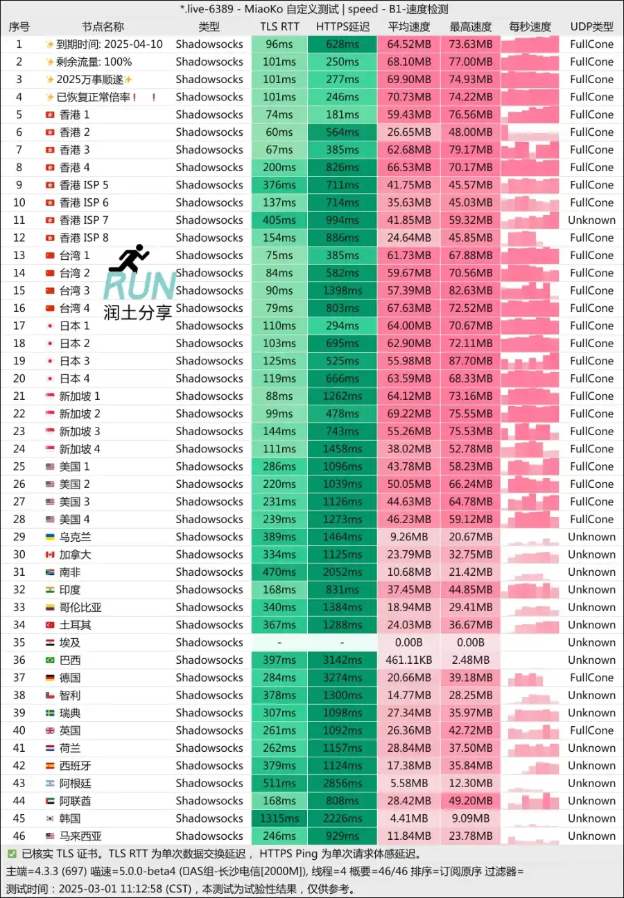 有香港家宽 IP 节点。另外 COCODUCK 有实验性的 Vmess 节点,可能不会正式推出,测速图中也未包含该节点。