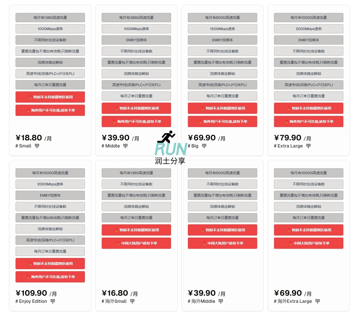 Enjoy Edition:¥109.9/月,1500G流量/月。